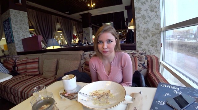 Сводил русскую пышечку в ресторан и на шопинг, а потом кончил в рот в примерочной