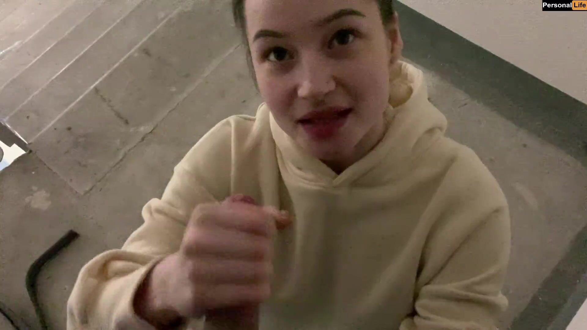 Соседка сделала быстрый минет в подьезде со спермой в рот