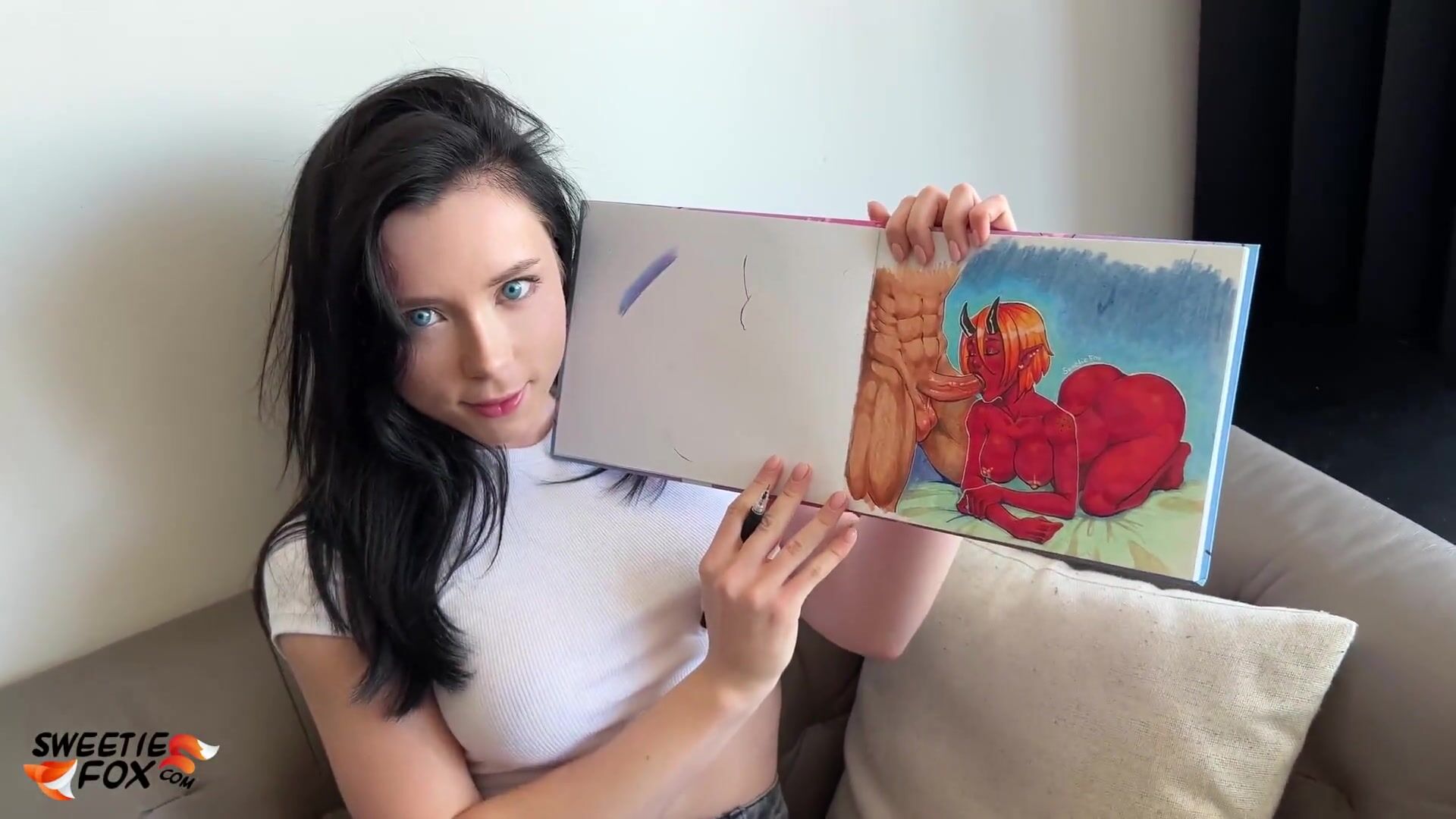 Молодая художница делает наброски и трахается со своим мужчиной по домашнему