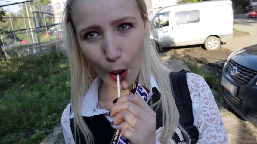 Молодая русская блондинка любит не только сладости, но и секс с взрослыми мужиками